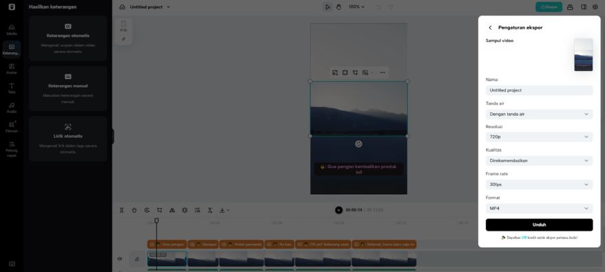 Setelah selesai, klik "Export" di pojok kanan atas. Bagikan langsung ke TikTok, Instagram, atau Facebook dengan "Publish", atau simpan ke perangkat dengan "Download" sesuai format, resolusi, dan frame rate pilihanmu.