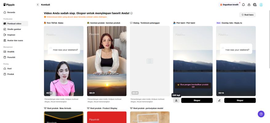 AI mengatur alur, transisi, dan peningkatan visual secara otomatis. Avatar, caption, foto, atau bahkan suara latar ditambahkan langsung. Jika ingin menyesuaikan, klik edit untuk masuk ke editor Pippit, di mana setiap perubahan tetap sinkron secara real time.